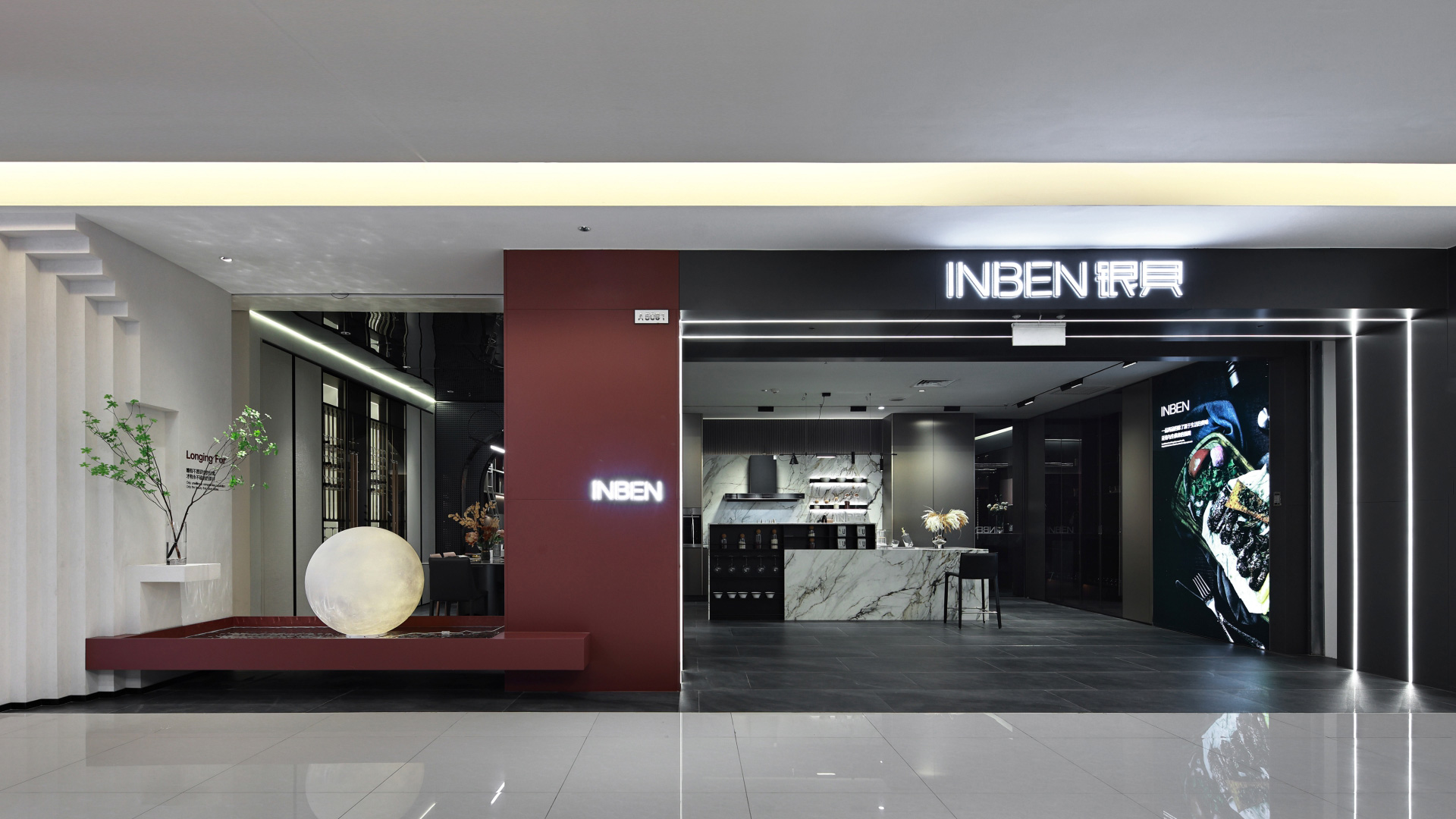 MORNING在INBEN银贝品牌北富森5楼家居体验展厅的设计中,设法在其中展现解构主义、光影空间、叠级之韵,以不同设计手法表达不同风格,用产品赋予居者不同生活方式,表达心灵深处的美学追求,让访客能深入体验INBEN银贝生活的艺术。